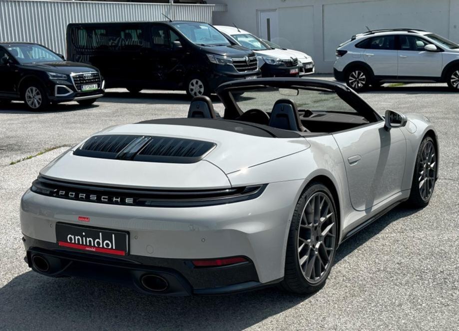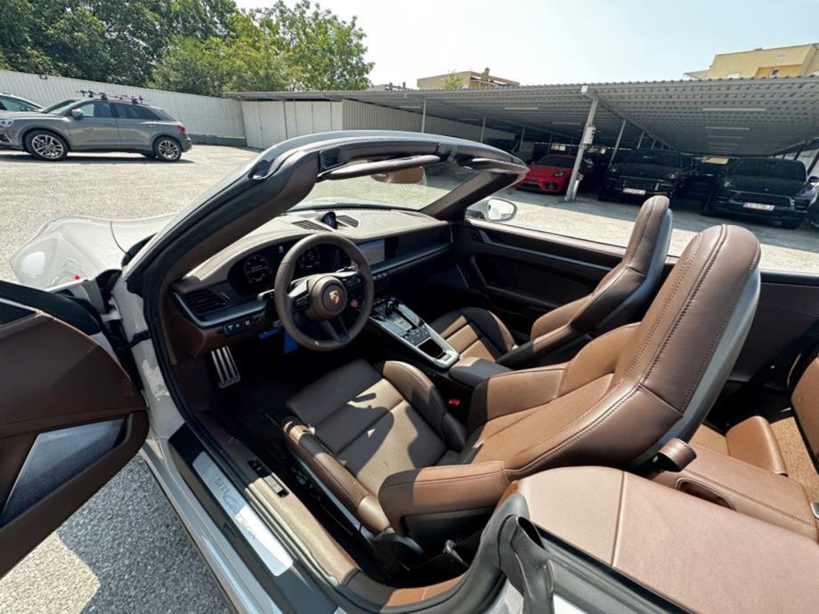 "Kupljen nov u Hrvatskoj kod ovlaštenog trgovca.PUNO OPREME I DODATNO:-Boje eksterijera 3H Crayon-1V Pomični krov u crnoj boji-Boje interijera i materijali HY Club koža u Truffle smeđoj boji-Kotači 59C 20''/21'' RS Spyder naplatci-Sjedala Q1J Adaptivna sportska sjedala Plus, električno podesiva u 18 smjerova s paketom memorije-4D3 Ventilacija prednjih sjedala-Paketi eksterijera 2D5 SportDesign paket u crnoj boji visokog sjaja Exclusive-Dizajn eksterijera 2W6 Poklopac spremnika goriva u Exclusive dizajnu Exclusive-Pogon/ Izvedba G1F 8-stupanjski Porsche Doppelkupplung (PDK) mjenjač-8LH Sport Chrono paket uključujući Porsche Track Precision aplikaciju i prikaz temperature guma-0P9 Sportski ispušni sustav sa sportskim ispušnim cijevima u crnoj boji Exclusive-1N3 Servo upravljanje Plus-Svjetla i osvjetljenje 8IU LED HD-Matrix glavna svjetla-8VH Exclusive Design stražnja svjetla Exclusive-Upravljač, poluga mjenjača 2PJ Grijani GT sportski upravljač u koži-Dizajn interijera P19 Papučice i odmorište za nogu u aluminiju Exclusive-Sustavi asistencije FT3 Prikaz okoline i asistent aktivne potpore pri parkiranju-3V1 Porsche Inno Drive uključujući adaptivni tempomat-7Y8 Asistent potpore za promjenu vozne trake-Komfor i svakodnevna primjena 4F2 Porsche Entry (ulazak u vozilo bez upotrebe ključa)-VC2 HomeLink® (programirajući otvarač garažnih vrata)-Infotainment 9VJ Burmester® High-End Surround Sound System"