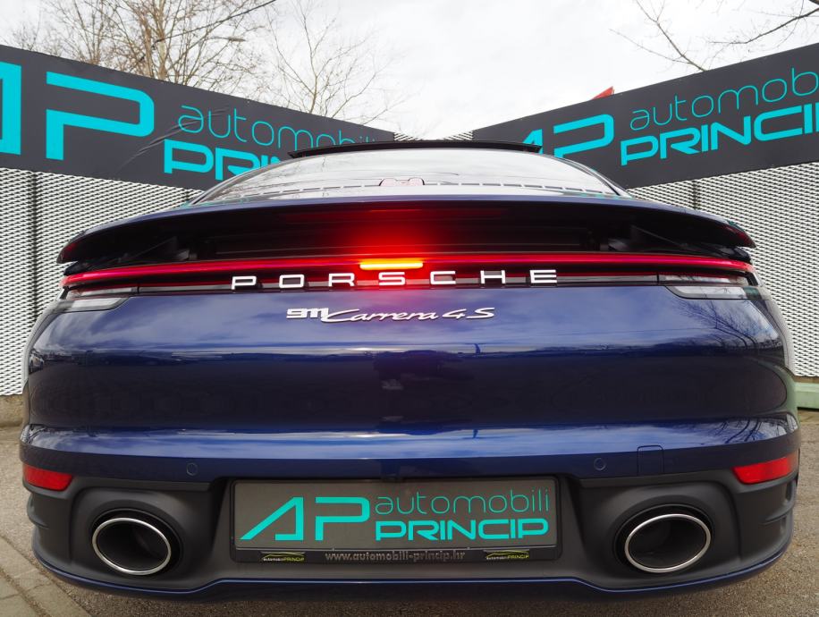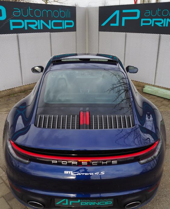 Oznaka modela, Servo upravljač Plus, Sportska sjedala Plus električno podesiva u 4-smjera, Paket kožne unutrašnjosti, Design paket osvjetljenja, Paket unutrašnjosti unutrašnje uređenje - lakirani elementi u crnu sjajnu boju, Interijer paket unutrašnje uređenje - brušeni aluminij, Sportski ispušni sustav sa mono završecima u srebrnoj boji, Automatsko zatamnjivanje osvrtnih zrcala (vanjskih i unutarnjeg) s ugrađenim senzorom za kišu, Električno poklopni vanjski retrovizori, Pogon na sva četiri kotača sa Porsche Traction Management (PTM), Porsche Stability Management (PSM), Porsche Wet Mode, 6 i 4 Monoblok Alu Kočione čeljusti u crvenoj boji, PDK mjenjač sa polugama na upravljaču, Porsche Communication Management (PCM) sa navigacijskim modulom, Zaslon osjetljiv na dodir-Multifunkcijski ekran, eCall, Sustav za kontrolu tlaka u gumama, Uređaj za pranje svjetla, Hill holder - HAC, Električno podizanje prednjih prozora-One Touch, Automatski Dual zone klima uređaj, vozač/suvozač, 20''/21'' Porsche Carrera S naplatci sa gumama 245/35 ZR20 sprijeda i 305/30 ZR21 straga, TRC (Traction Control) sustav kontrole proklizavanja, VSC (Vehicle Stability Control) sustav za kontrolu stabilnosti vozila sa mogućnošću isključivanja, Alarmni uređaj sa nadzorom unutrašnjosti, Elektronska blokada motora, Sistem upravljanja sa govorom (LINGUATRONIC), Podne prostirke, tekstil Ručica mjenjača / ručne kočnice - koža, Filter protiv prašine, Filter sa aktivnim ugljenom, Sportska sjedala naprijed, Asferično ogledalo/a na vozačevoj/suvozačevoj strani, Električno podesivi, Grijani vanjski retrovizori, Porsche Side Impact Protective System Crni vanjski ukrasni elementi, Asistent svjetala, Follow me home, LED dnevna svjetla, LED pokazivači smjera, LED pozicijska svjetla, LED stražnja svjetla, Sustav upozorenja i kočioni asistent sa prednjom kamerom, Keyless-Go, Atermička stakla, Tonirana stakla, Start&Stop, Elektronički raspoređivač kočenja (EBD), Adaptivni stražnji spojler, El.podesiv, Zaštita podvozja /motora/, LED Podno osvjetljenje, Zatezači sigurnosnih pojaseva naprijed, Grijane mlaznice za pranje vjetrobranog stakla, Podesivo podvozje, Porsche Torque Vectoring Plus (PTV Plus) sa elektronskom blokadom stražnjeg diferenciala, Connect Plus. 5413KM. Stanje-poput novog. Mogućnost narudžbe sličnog vozila prema željenoj specifikaciji sa kratkim rokom isporuke!