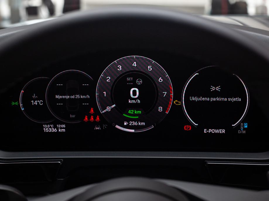 Oznaka modela utisnuta u naslon za ruke na središnjoj konzoli