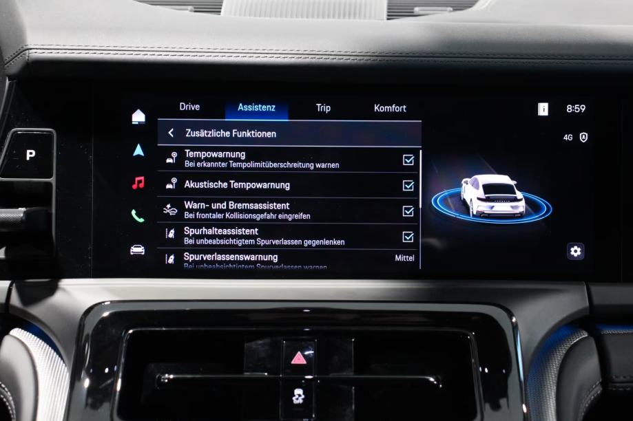 Pretinac za pametni telefon, zračni jastuci za vozača/suvozača, aktivna hauba, kontrola proklizavanja (ASR), pogon na sve kotače, asferično vozačevo ogledalo, električno sklopiva vanjska ogledala, električno podesiva vanjska ogledala, podesiva i grijana vanjska ogledala s automatskim zatamnjivanjem, vanjska ogledala s LED ambijentalnim osvjetljenjem, crne eloksirane kočione čeljusti, Connect Plus (Bluetooth, Apple CarPlay, Wi-Fi, sustav praćenja vozila), protuprovalni alarmni sustav s nadzorom unutrašnjosti, automatsko uključivanje prednjih svjetala, aluminijski zaštitni pragovi vrata, sustav pomoći vozaču: integrirana 4D kontrola šasije, sustav pomoći vozaču: pomoć pri parkiranju sprijeda i straga, sustav pomoći vozaču: pomoć pri ostajanju u voznoj traci, memorijski paket za vozača, vjetrobransko staklo s gornjim zatamnjenjem, podne prostirke, prtljažnik navlaka/rolo zavjesa, 8-stupanjski mjenjač s dvostrukom spojkom (PDK), držači za čaše, vrata prtljažnika s automatskim sustavom otvaranja i zatvaranja, LED stražnja svjetla, adaptivni stražnji spojler (2-smjerni), filter zraka u kabini: filter s aktivnim ugljenom (filter mirisa), unutarnji retrovizor s automatskim zatamnjivanjem, paket unutrašnjosti: crna (visoki sjaj), Isofix pričvršćivači za dječje sjedalice na stražnjim sjedalima, karoserija: 4 vrata, 2-zonska automatska klima, zračni jastuk za koljena, sustav zračnih jastuka za glavu (zračna zavjesa), sportski kožni upravljač (3-kraki) s multifunkcionalnim ručicama i ručicama za mijenjanje brzina, aluminijski naplatci, matrix LED prednja svjetla, 2,9-litreni V6 turbo motor s katalizatorom od 260 kW, sustav za hitne pozive (eCall), filter čestica benzina (GPF), električna parkirna kočnica, Porsche Communication Management (PCM) uključujući online navigacijski modul, Porsche Traction Management (PTM), digitalni radio prijem (DAB+), sustav za nadzor tlaka u gumama, djeljivi/preklopivi naslon stražnjeg sjedala (60:40), niske emisije prema standardu Euro 6e, prednji bočni zračni jastuci, servo upravljač osjetljiv na brzinu plus, grijana prednja sjedala, sunce viziri s osvijetljenim retrovizorima, start/stop sustav, 4-točkovna LED dnevna svjetla, USB priključci straga (samo funkcija punjenja), sustav za praćenje vozila Plus (PVTS Plus)