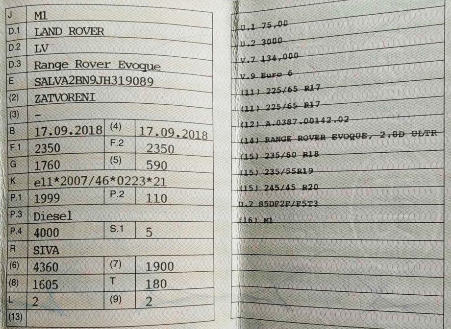 Za bilo kakvu provjeru prilažem broj šasije: SALVA2BN9JH319089 te sam suglasan da se vozilo pregleda u bilo kojem ovlaštenom servisu o trošku potencijalnog kupca.