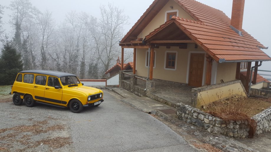 • U autoservisu Žabek Željka iz Veleškovca, Zlatar Bistrica sa stručnim osobljem izvršili smo demontažu kabine sa šasije i dogradili dio šasije sa dodatnom stražnjom osovinom i dio Kabine sa drugog Renaulta R4 istih preformansa.