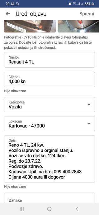 Oglas iz usluge pa zovite na mob. 099 400 2843