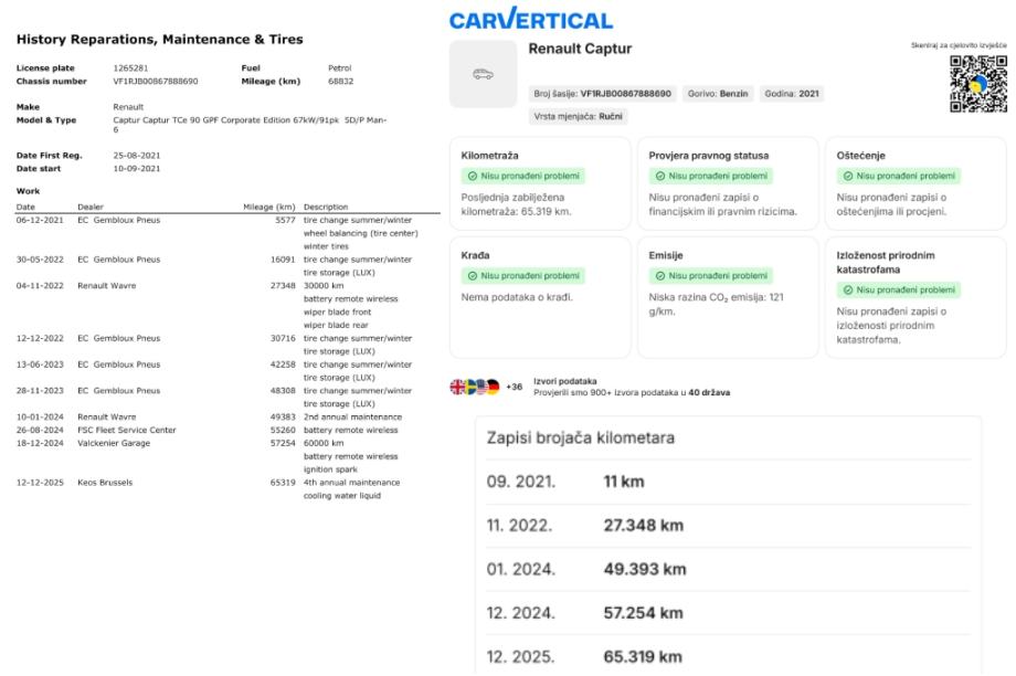 – Trajno jamstvo na prijeđeni broj kilometara i porijeklo vozila.