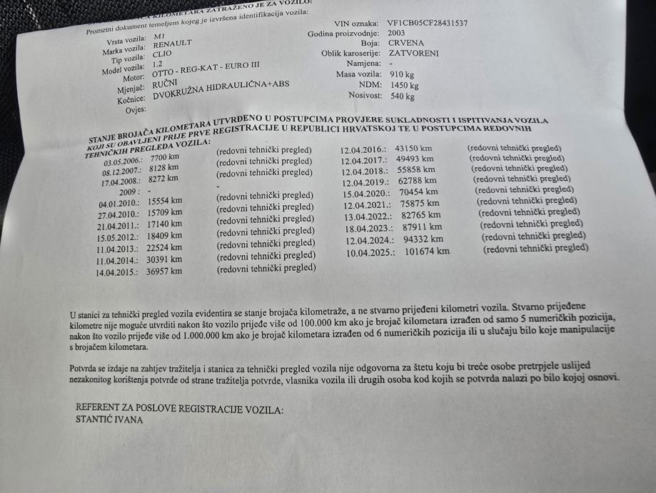 - Ispis kilometraže iz stranice za tehnički pregled
