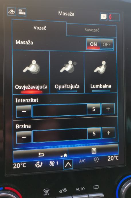 Funkcija masaže vozačkog i suvozačkog sjedala (3 vrste masaže)