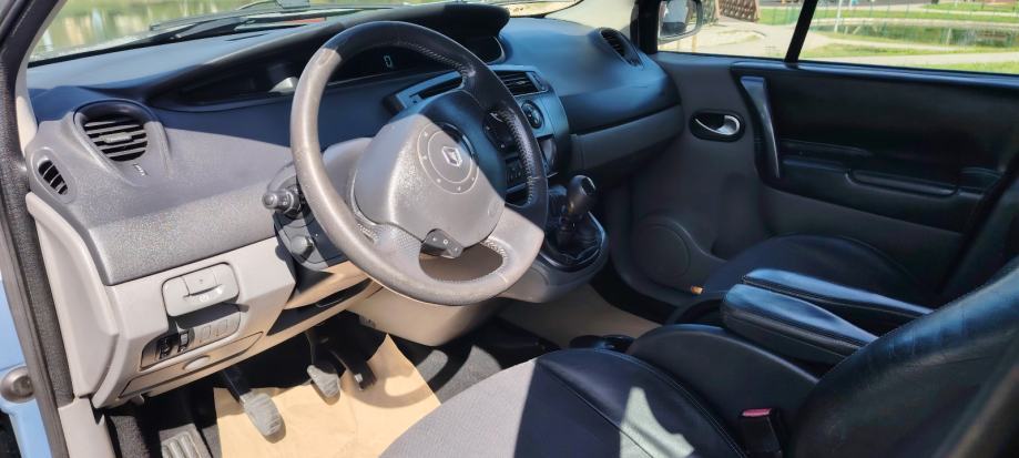 Prodajem Renault Grand Scénic 1.9 dCi, 2005. godište, kupljen nov u Hrvatskoj i registriran do 18.07.2024. Vozilo je dizel, sa ručnim mjenjačem, snage 88 kW. Obujam motora 1.870 cm³, ekološka kategorija Euro 4. Karoserija je monovolumen, 5 vrata, 7 sjedišta, boja plava (metalik).
