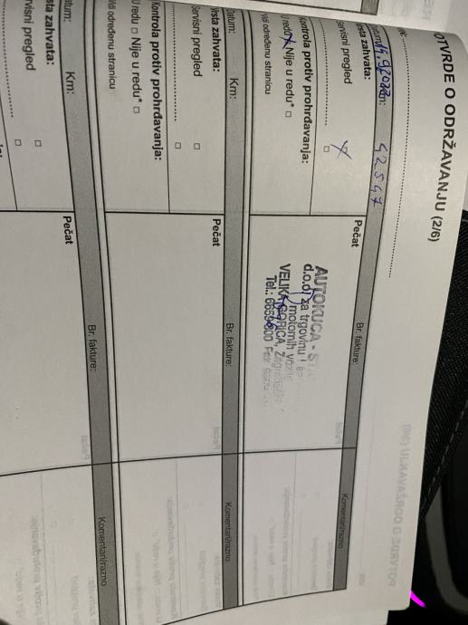 - uvijek garažiran i redovno servisiran, na svakih 10 000 km, u Auto kući Štarkelj u Zagrebu (servisna knjižica)