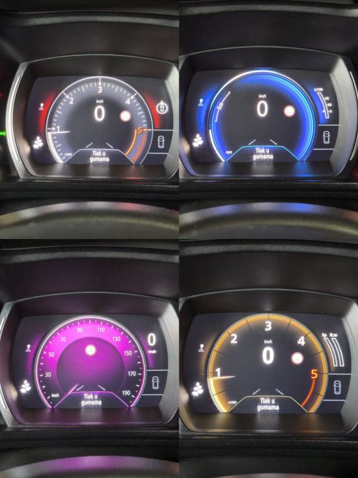 Pet tematskih boja izgleda satova i ekrana te četiri različita izleda sata u kabini