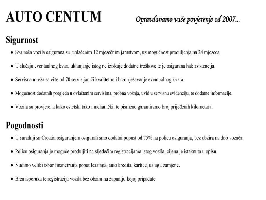 Trudimo se što kvalitetnije prezentirati naša vozila, uz želju da budemo što precizniji i točniji, zadržavamo pravo na eventualnu pogrešku, te će ista biti ispravljena u najkraćem mogućem roku.