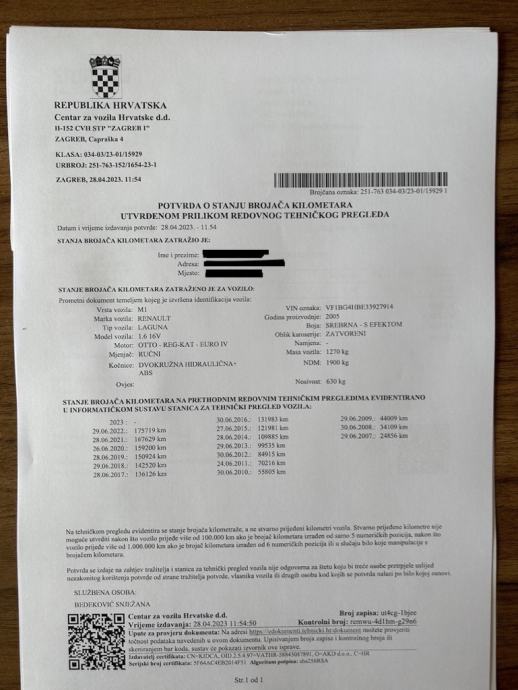 Automobil je prešao 185.000 km, prilažem potvrdu Stanice za tehnički pregled