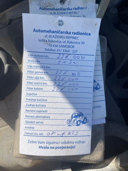 Napravljen je zadnji servis 07.08.2023. te se na slici vidi što je sve promijenjeno. (također postoji pregled svih servisa otkad je auto u mom vlasništvu).