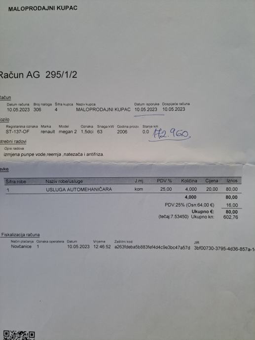 Redovno servisirano po servisnim intervalima (veliki servis napravljen na 172.000 km, mali servis prije 200 km).