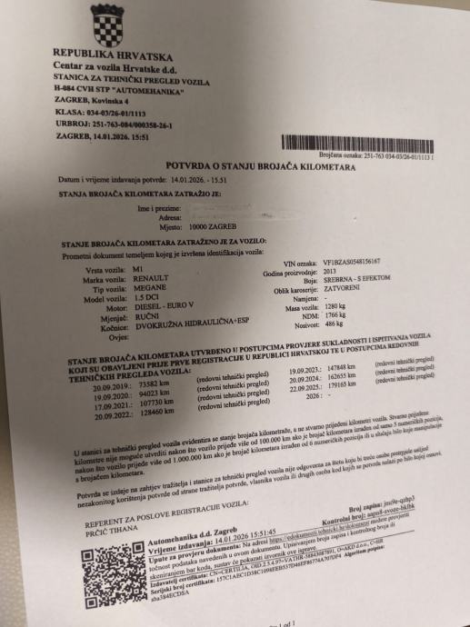 ORIGINALNA KILOMETRAŽA 184.000 KM (IZLIST IZ STANICE ZA TEHNIČKI PREGLED).