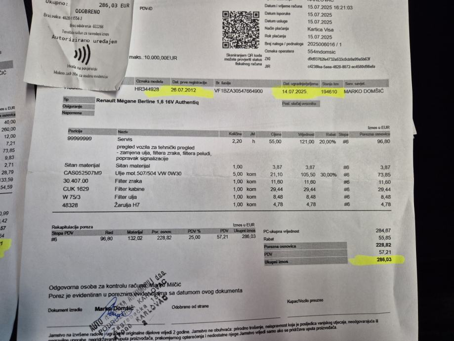 SERVISNA RAĐENI DO U OVLAŠTENOM SERVISU RENAULT ZAK KARLOVAC...