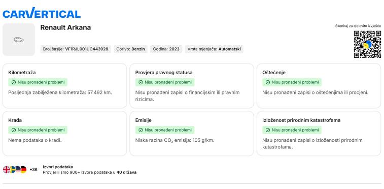 Na našoj WEB stranici možete pogledati CarVertical izvještaj.