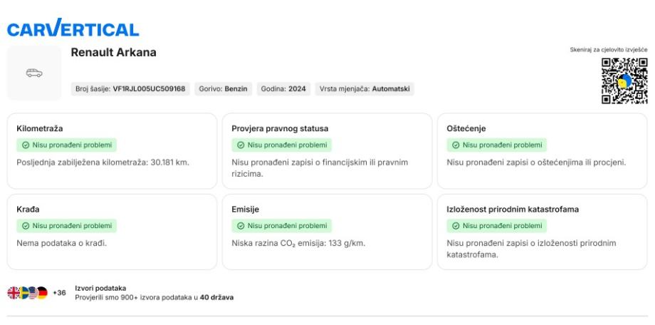 Na našoj WEB stranici možete pogledati CarVertical izvještaj.