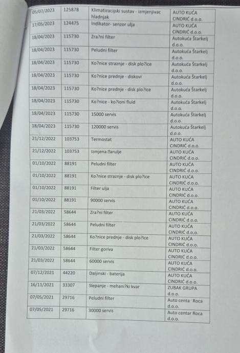 -SERVISNA DOKUMENTACIJA NA UVID KUPCU