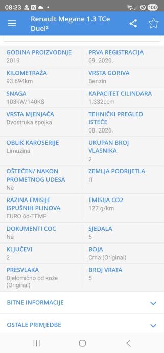 Popis opreme vozila u oglasu informativnog je karaktera, RENUO M-M d.o.o. se ograđuje od mogućih nenamjernih pogrešaka vezanih za specifikaciju vozila u oglasu.
