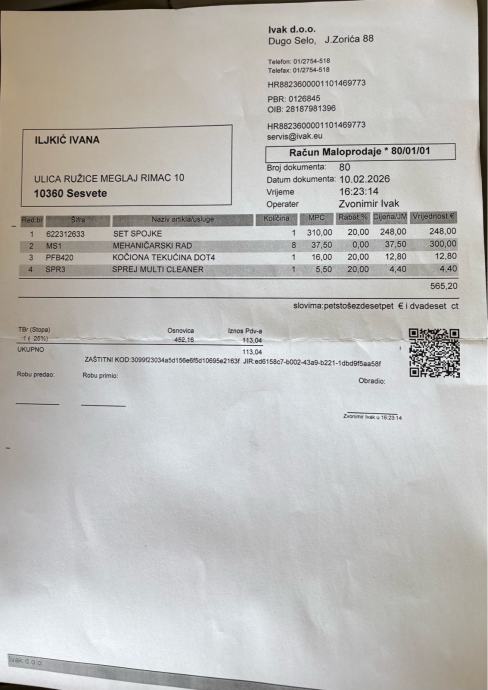 - upravo zamijenjen kuplung set( račun u prilogu 565,00e) i stavljene su nove M+S gume( 250,00e s montažom)