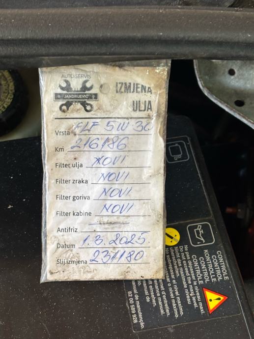 - zadnji redovan servis napravljen na 216tkm( ulje i svi filteri), te su zamijenjene kočnice( diskovi i pločice), veliki servis na 150tkm