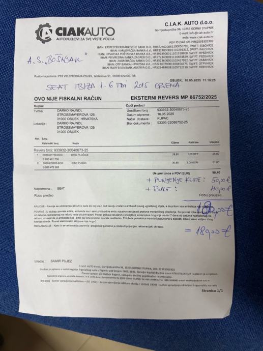 - ISTAKNUTA CIJENA JE SA SVIM PLAĆENIM DAVANJIMA DO REGISTRACIJE...(na ime kupca...)