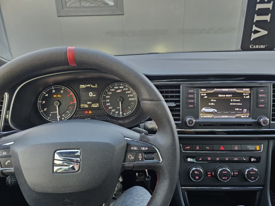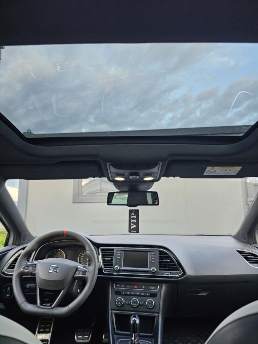 Automobil nardo grey boje, ojačan sportski ovjes, coustom auspuh, coustom amortizeri, felge 19" sa continental all season 2 cjelogodišnjim gumama stavljenima prije 5000km, dsg, led svjetla, automatska klima, F1 mjenjač brzina za volanom, alcantara volan, panoramski krov, veliki servis napravljen prije cca 20 000km, mali servis napravljen prije 4500km te su zamijenji stražnji diskovi, 4 moda vožnje (comfort,sportski,cupra i individual), seat sound ozvučenje, ekran osjetljiv na dodir, parking senzori.