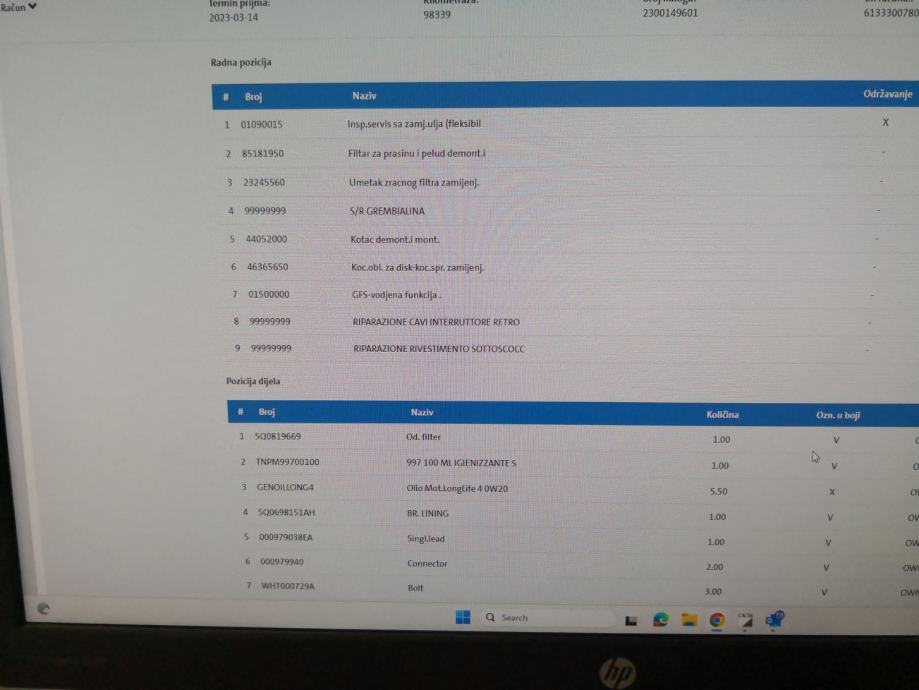 S obzirom da ne postoji fizička servisna,slike ekrana sa naznačenim i odrađenim servisima,u privitku.