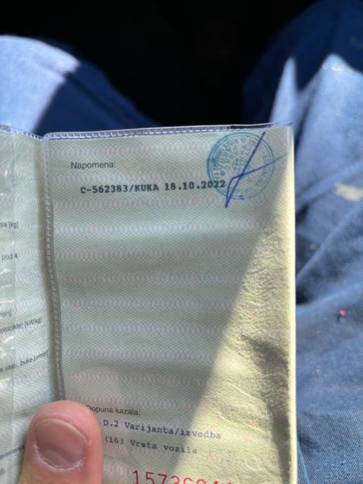 -Kuka za vuču tereta ugrađena (račun) i upisana u prometnu dozvolu