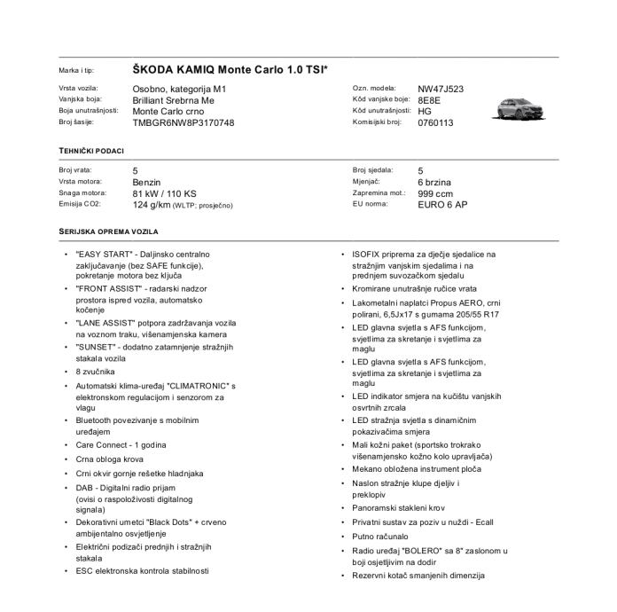 Škoda Kamiq 1,0 TSI Monte Carlo