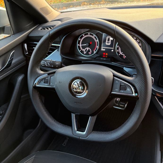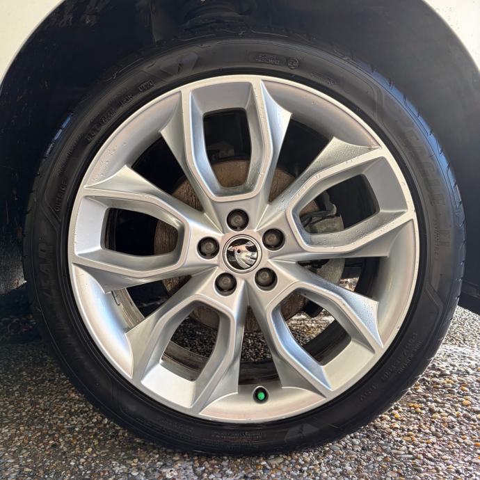 Na automobilu su tvorničke CRATER 18" felge sa zimskim gumama, a kupac dobiva i ljetne gume. Zimske gume su Michelin Pilot Alpine 215/45/18 DOT 3520, dok su ljetne Goodyear Eagle F1 215/45 R18. Trenutno je automobil na 64000km i u izvrsnom je stanju. Kupac dobiva originalne, tvorničke gumene tepihe sa kadicom za prtljažnik i originalne Škoda tekstilne tepihe (kao novi).