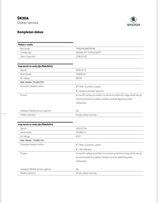 - Uredno servisiran i održavan po servisnom planu ŠKODA tvornice u ovlaštenom ŠKODA servisu