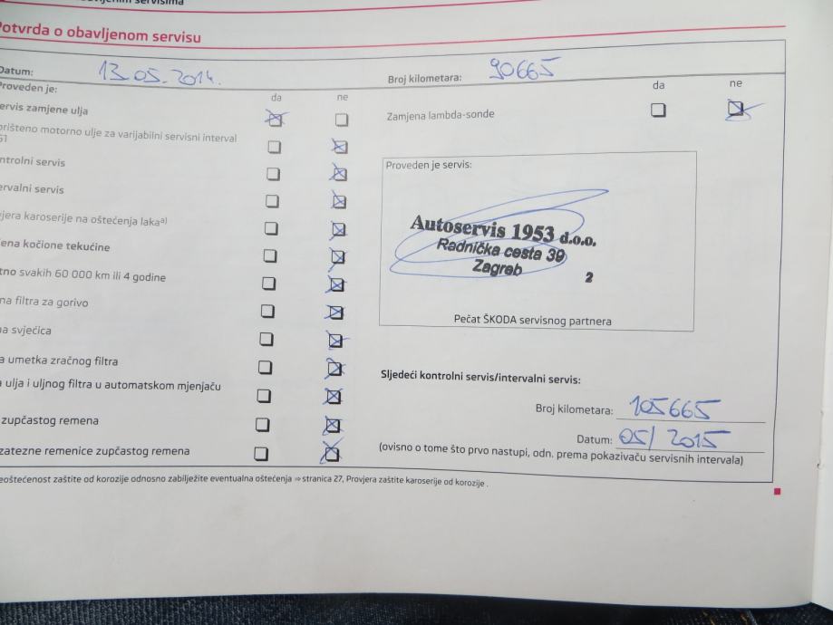 Prvi vlasnik, kupljena nova u RH, 99.000 km, servisna knjižica, dva ključa, održavana i servisirana u ovlaštenom Škoda servisu.
