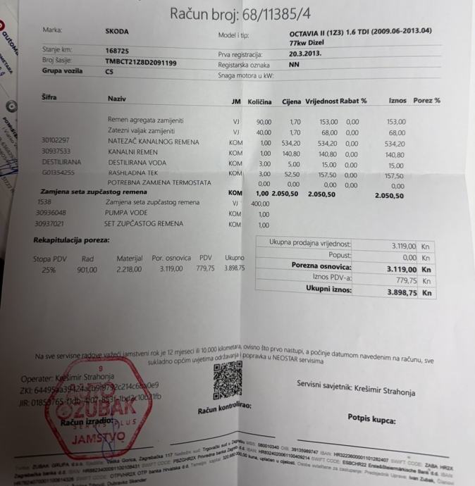 - NAPRAVLJEN VELIKI SERVIS…(račun u prilogu…)