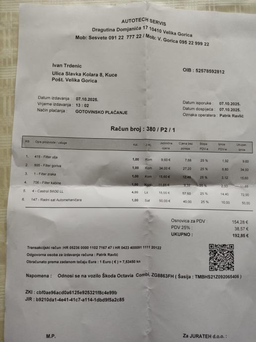 Napravljen servis 07.10.2025.