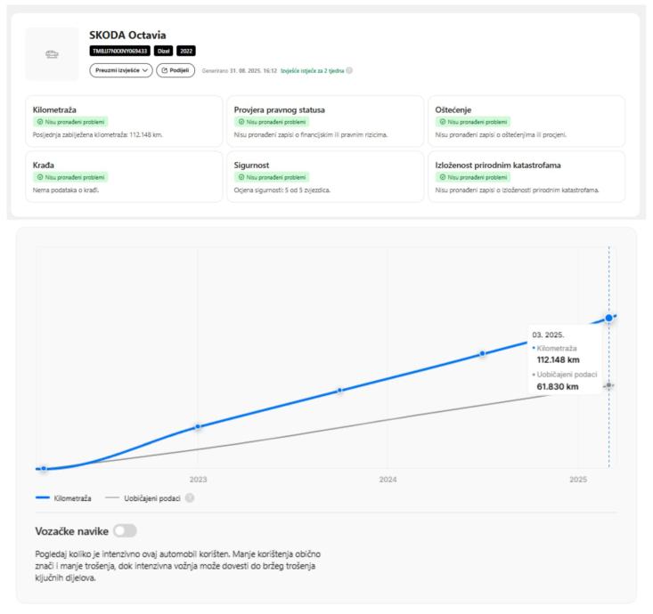 - Jamstvo na tehničku ispravnost vozila, prijeđene kilometre te podrijetlo vozila.