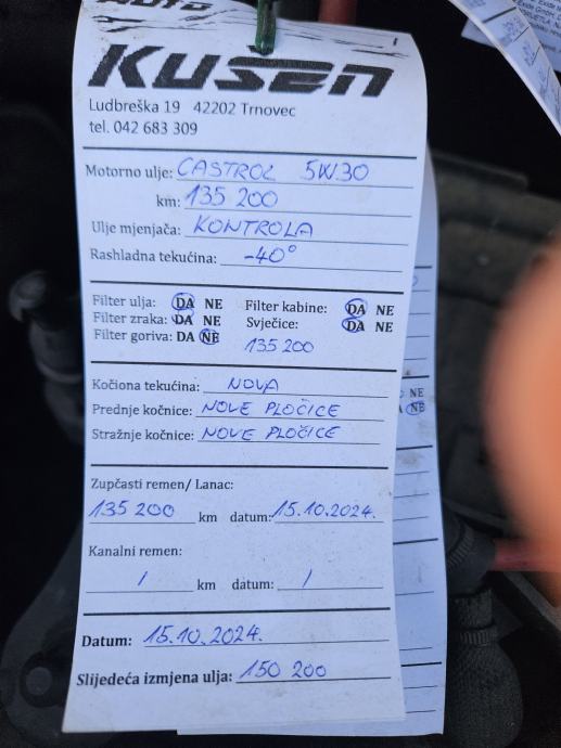 Auto je vožen obiteljski, kupljen 2015 u AutoZubaku u Hr. Redovito servisiran, zadnji servis u kolovozu 2025. Prošle godine promjenjen zupčasti remen. Auto nema skrivenih mana i zamaskiranih nedostataka.. Prije 2 mjeseca kupljene nove all season gume Kleber Quadraxer 3.