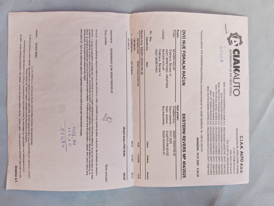HR vozlo, nije uvoz.