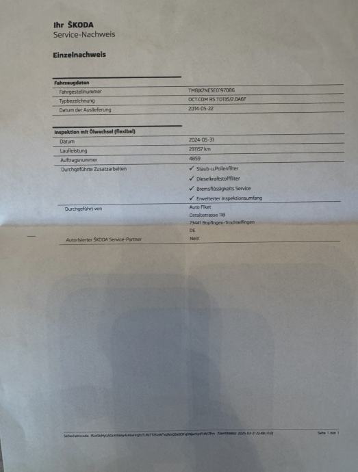 SERVISNA KNJIGA…(zadnji servis u ovlastenom servisu na 231000)
