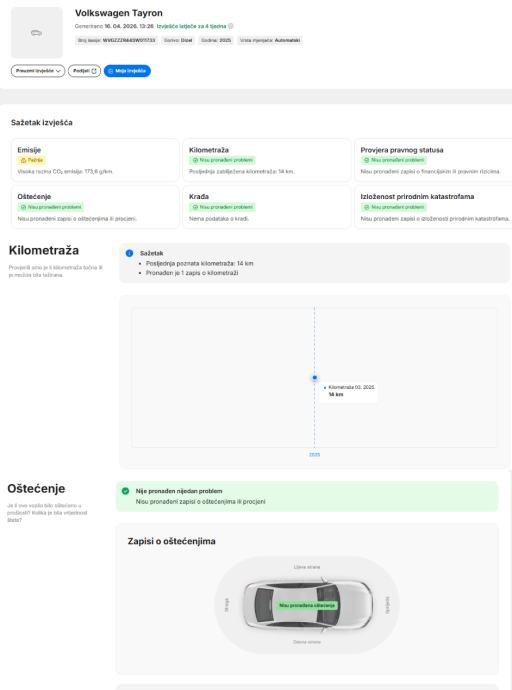 - Jamstvo na tehničku ispravnost vozila, prijeđene kilometre te podrijetlo vozila.