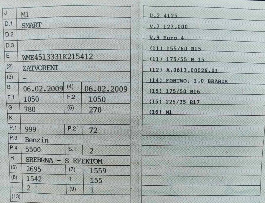 Za bilo kakvu provjeru prilažem broj šasije: WME4513331K215412.