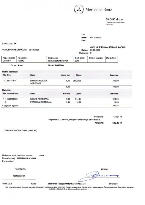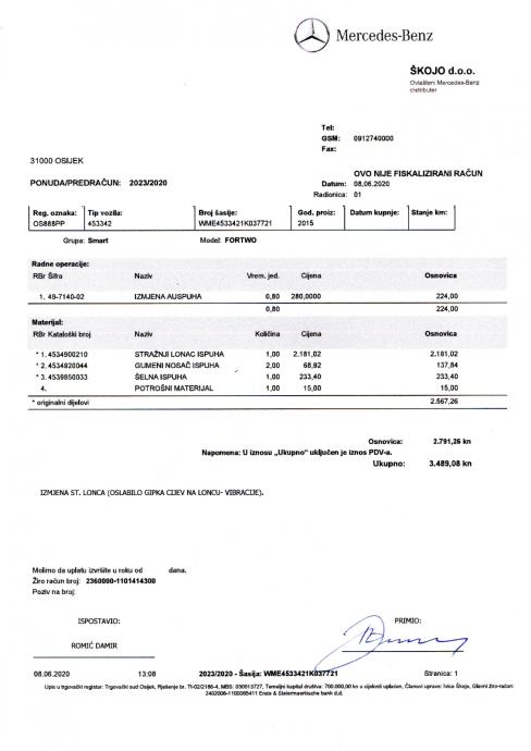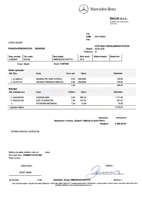 Od stajanja trošak kod Škoje u Osijeku 8.000 kn, lipanj 2020.