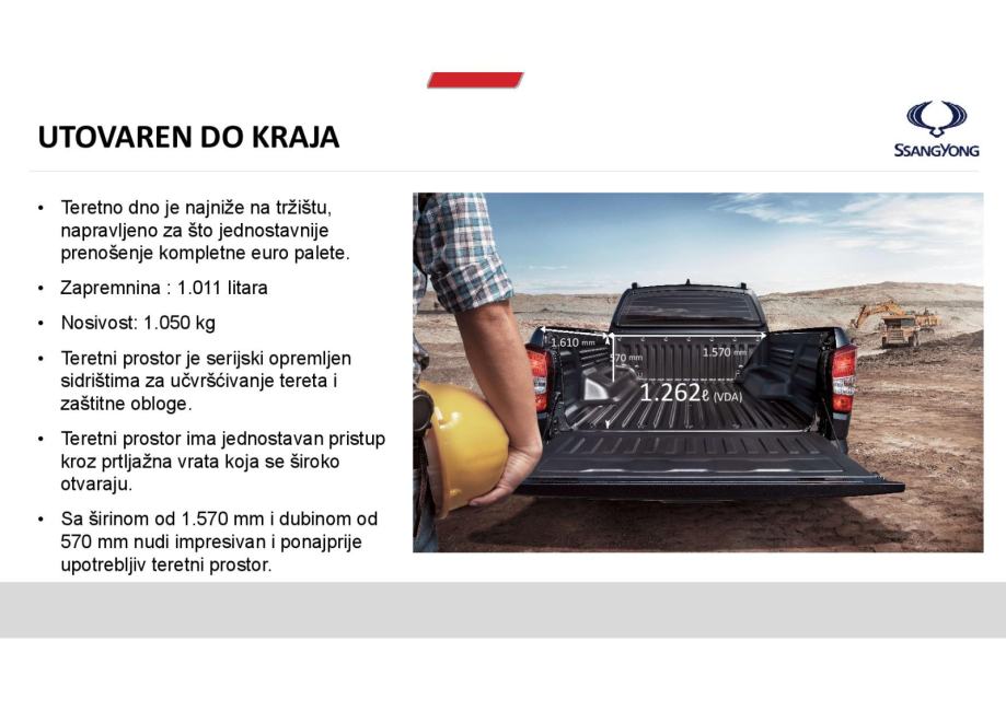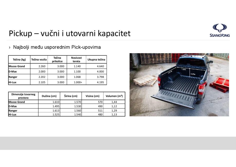 - Kreativna konstrukcijska i aerodinamična rješenja osiguravaju najbolji rezultat na testu buke i vibracija u segmentu Pick-up. Usporedivo sa osobnim vozilima.
