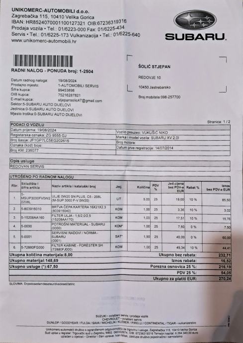 Subaru Impreza 2 automatik, SERVISNA KNJIŽICA, HRVATSKA-KUPLJEN!