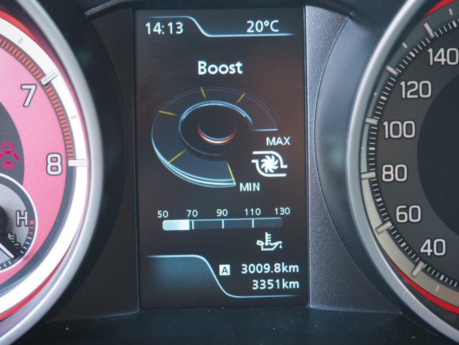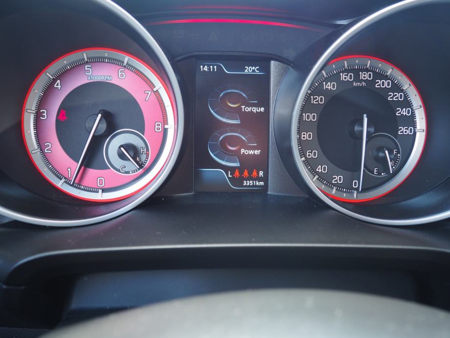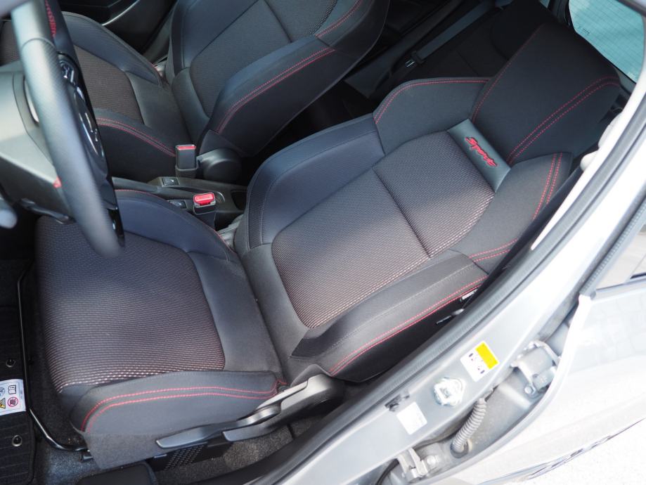 PODVOZJE:195/45 R17 + polirani alu naplatci, Set za popravak probušene gume VANJŠTINA: Sportska maska, prednji i stražnji branik, Sportski pragovi, Krovni spojler, Dvostruka ispušna cijev, Vanjski retrovizori u boji vozila, Vanjski retrovizori električno podesivi, preklopivi i grijani sa integriranim pokazivačima smjera VIDLJIVOST: Prednja i stražnja LED svjetla, Prednja i stražnja svjetla za maglu, Automatsko paljenje svjetala, Automatsko paljenje i gašenje dugih svjetala, Dnevna svjetla LED, Tonirana stakla, Zatamnjena stražnja stakla PRAVLJANJE I INSTRUMENT PLOČA: Trokraki kožni upravljač sa komandama za radio, tempomat, telefon i lane assist, Podešavanje upravljača po visini i dubini, Servo upravljač, Brojač okretaja motora, Putno računalo, Info zaslon 4.2" LCD u boji (sat, vanjska temp.,potrošnja goriva, doseg, temp.ulja, prosječna brzina), Indikator optimalnog stupnja prijenosa, Zvučno i svjetlosno upozorenje za nevezan pojas vozača, suvozača i na stražnjoj klupi UDOBNOST: El. pokretanje prednjih i stražnjih prozora, Daljinsko centralno zaključavanje, Otvaranje i paljenje vozila pritiskom na tipku, Klima uređaj automatski, Infotainment sustav 7" + NAVI + Bluetooth + kamera za vožnju unatrag + DAB, Adaptivni tempomat kontroliran pomoću radara, Limitator brzine, Grijanje prednjih sjedala, Grijanje stražnjeg dijela automobila UNUTRAŠNJOST: Svjetlo za čitanje sprijeda,