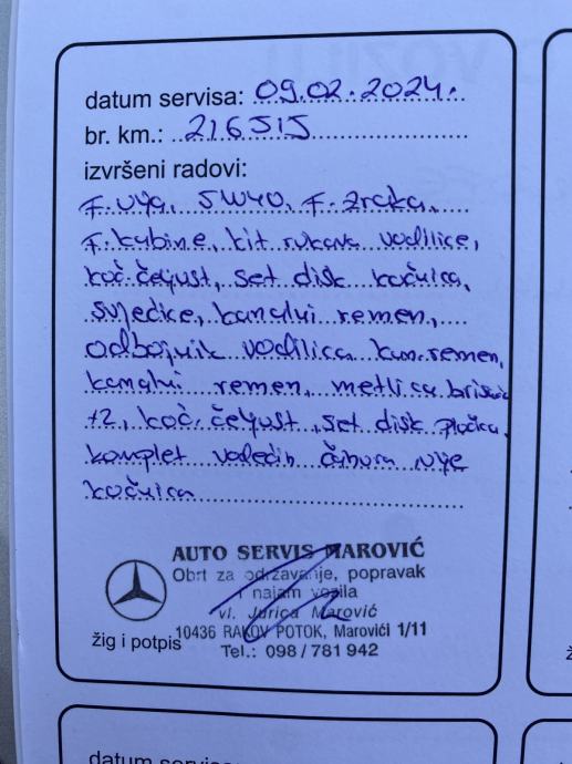 - motor u odličnom stanju i uredno servisiran - upravo napravljen mali servis -ulje i filteri, na slikama vidljiv veliki servis iz 2024.