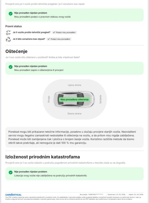 - 2. vlasnik (od 2014 godine ), nikad sudjelovao u karambolu ( u slikama se nalazi i CarVertical izvješće)