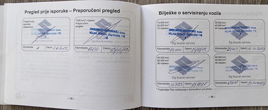 Svi servisi su rađeni u ovlaštenom Suzuki servisu (Unikomerc automobili d.o.o. gdje je i kupljen )