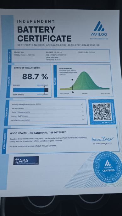 - Doseg do 615 km po WLTP-u (realno cca 400 - 500 km) baterija testirana u EV Clinic 88,7% kapaciteta