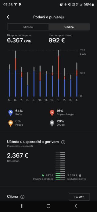 Uz punjenje kući, 100km košta oko 1.5 eur.